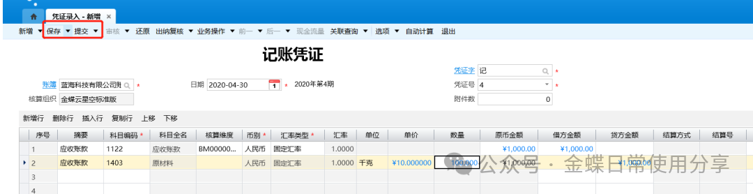 9.凭证信息录入完整且无误后,点击【保存】、【提交】按钮;