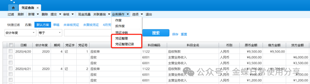 1.用户可通过“调整期间凭证查询”功能查询调整期间凭证;