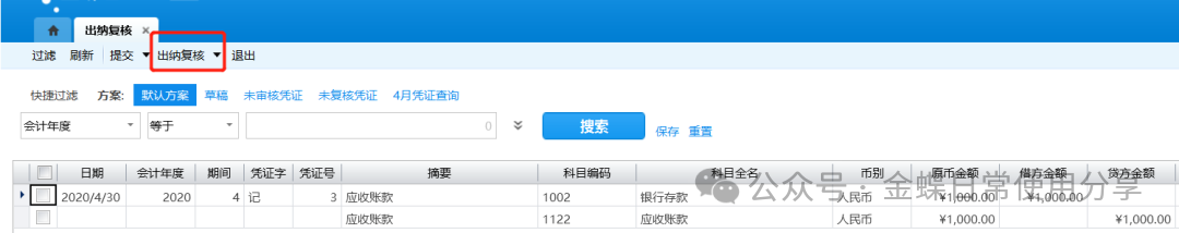 【功能菜单】:【财务会计】->【总账】->【凭证管理】->【凭证审核
