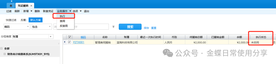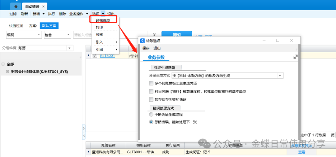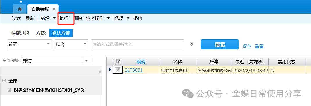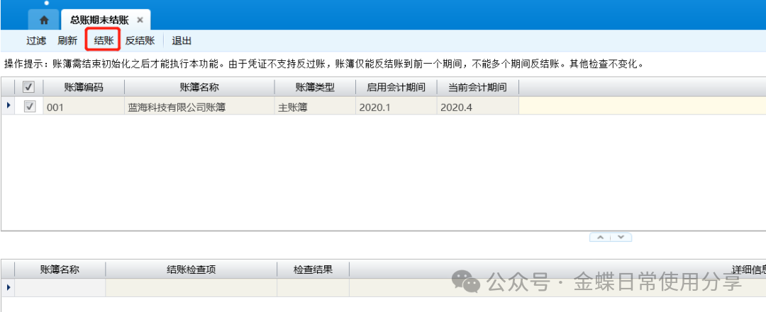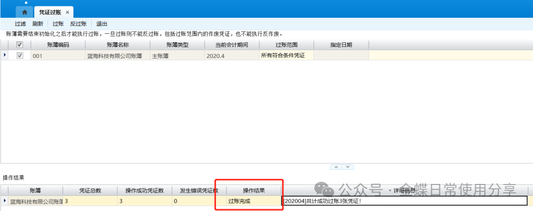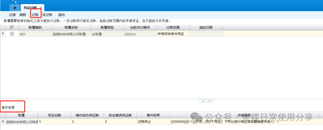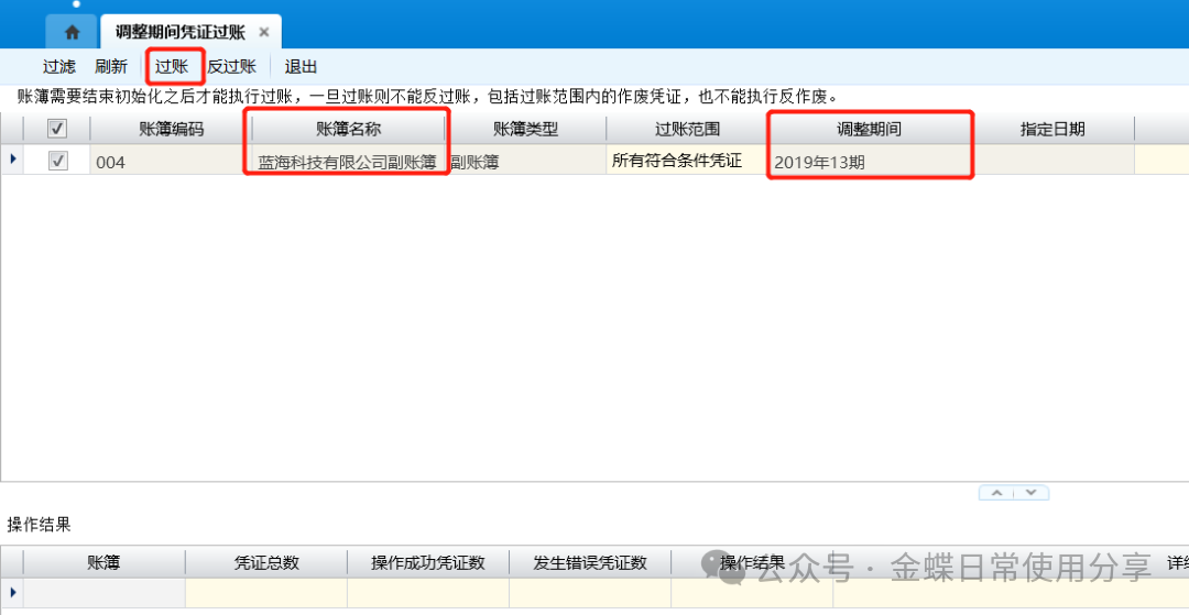 1.选择相应的需要执行过账的账簿,点击【过账】;