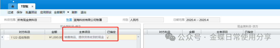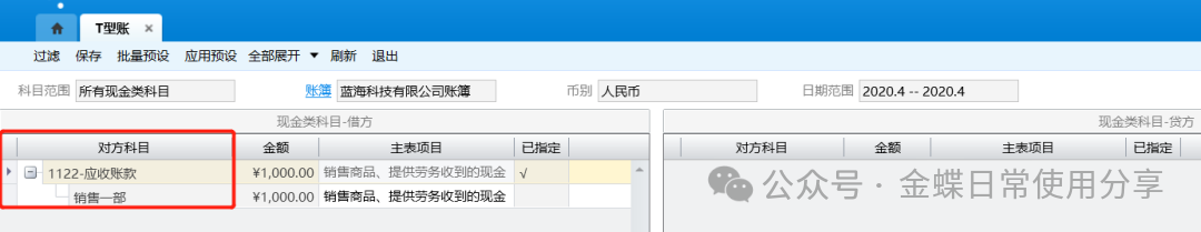 2.系统在显示科目的对方科目信息时,如果凭证分录中存在红字负数金额,系统在判断对方科目前,先将红字负数金额转换为相反方向的正数金额。对于多借多贷的凭证,系统根据科目的金额优先匹配原则确认对方科目;