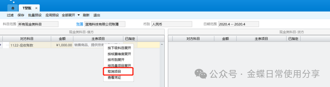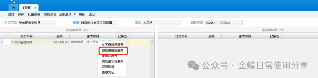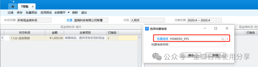 3.如果科目设置了核算维度,还需选择对应的核算维度,比如:应收账款挂了客户这个核算维度,则需要选择对应客户;