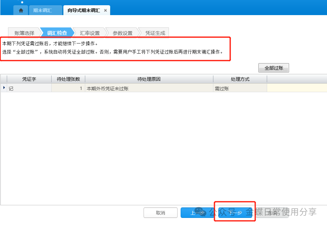 1.如果总账系统参数勾选了<凭证过账前必须审核>,则需要审核所有待过账凭证方可过账;
