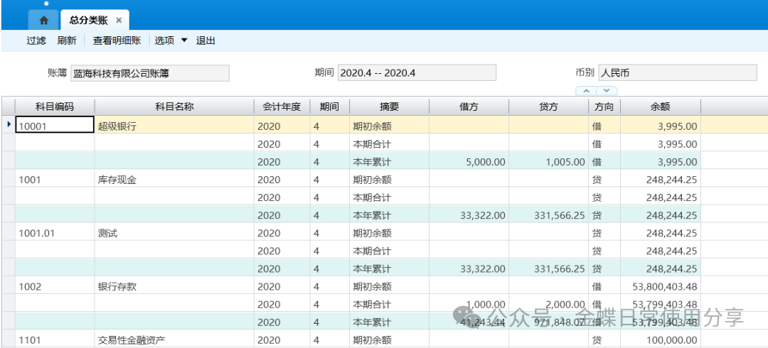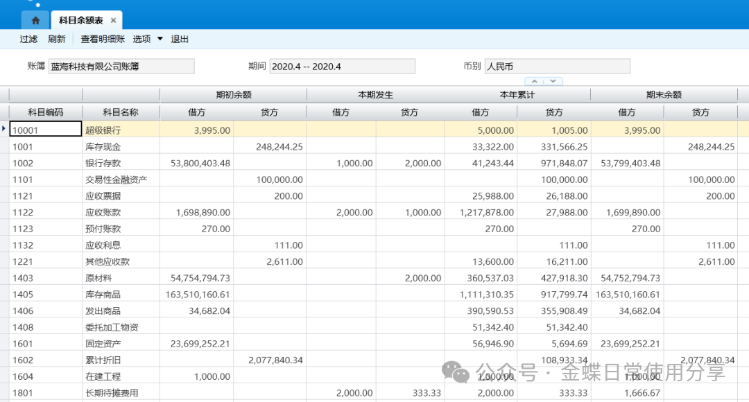 操作说明】:查询科目余额表