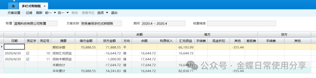 【功能菜单】:【财务会计】->【总账】->【账簿】->【多栏式明细账】