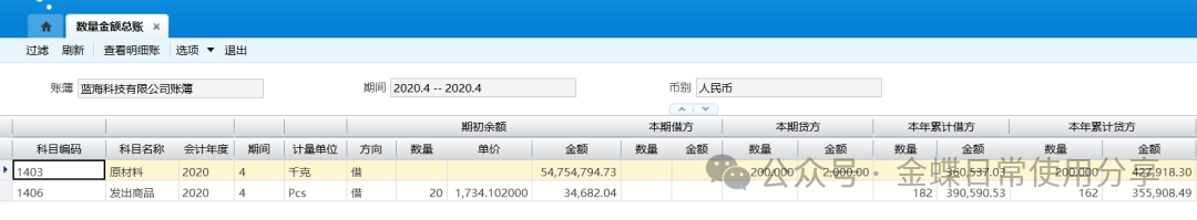 业务场景】:数量金额总账用于查询设置为数量金额核算科目的“期初结存”、“本期收入”、“本期发出”、“本年累计收入”、“本年累计发出”以及“期末结存”的数量及单价、金额数据。