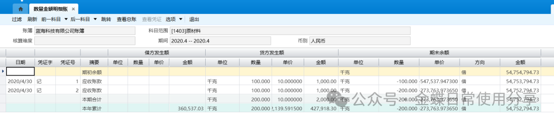 操作说明】:查询数量金额明细账