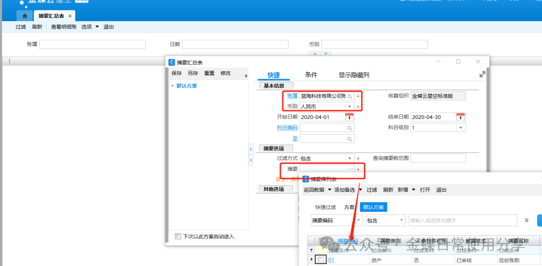 业务场景】:总账系统提供摘要汇总表查询功能,摘要汇总表可按凭证摘要过滤后汇总查询账簿一定期间内科目发生金额,便于查询某项特定业务在指定期间的发生情况。