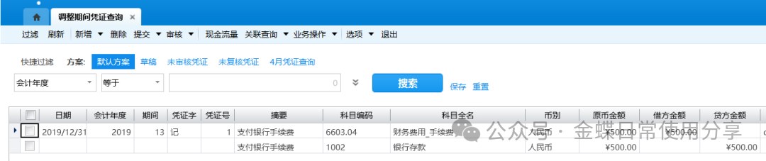 业务场景】:用户可通过“调整期间凭证查询”功能查询调整期间凭证。