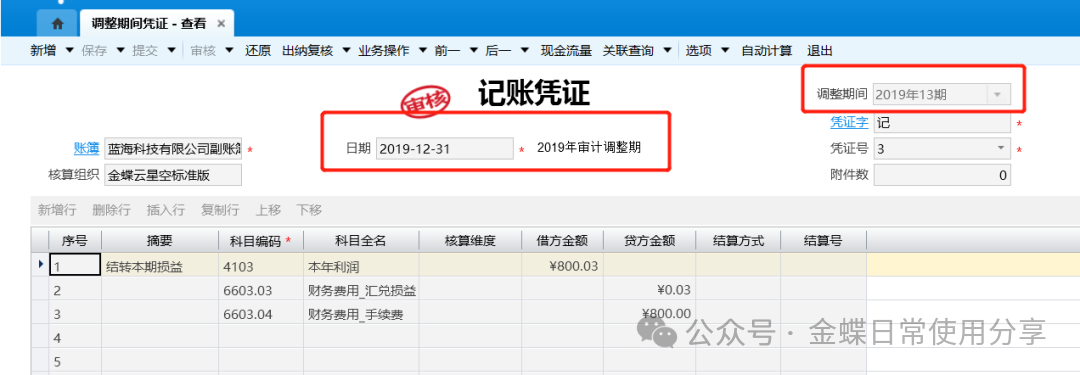 业务场景】:调整期业务处理,是在不反结账的情况下,直接对上一年度增加调整期间并录入调整分录,调整期间的凭证过账后,直接更新下一年度各期间的科目余额。