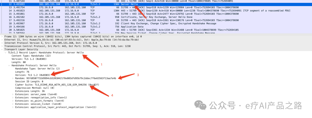 服务器单向认证为例, 并结合wireshark抓包,分析TLS握手协议详细流程: