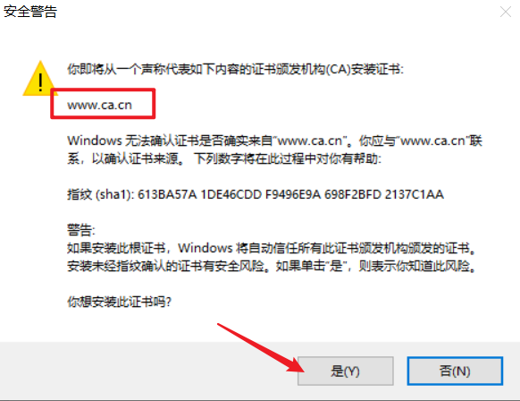 配置完成后使用nginx -s reload重新加载配置,让其生效,然后配置本地证书文件和hosts将第三步生成的CA服务器需要对外公开的证书文件cacert.pem复制到电脑本地,后缀名改为crt格式,然后双击安装证书,将其导入到电脑本地显示导入成功即可,由于www.mytest.cn这个域名没有在DNS域名服务商哪里注册,所以需要我们自己在hosts文件中添加域名解析地址,Windows电脑在C:\Windows\System32\drivers\etc下,先将hosts文件拖出来到桌面,然后修改添加如下内容在拖进去修改完成后就可以试着用https方式访问了,由于我使用了天翼云的ECS云主机,但是天翼云如果使用80或者443端口需要进行备案,所以我这里使用9443作为网页端口。这就是使用openssl工具自签发证书解决网页未使用https访问问题。