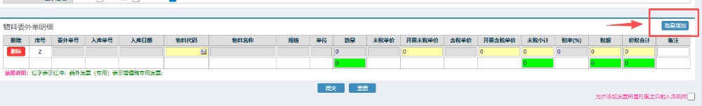 4.选好对应发票明细后,可以根据情况修改含税和未税的单价,确认无误后点击提交