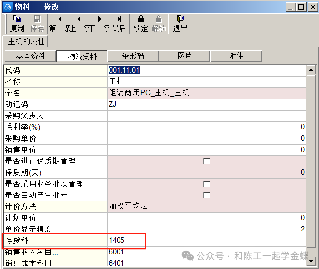 这里的存货科目来源于物料属性中的“存货科目代码”