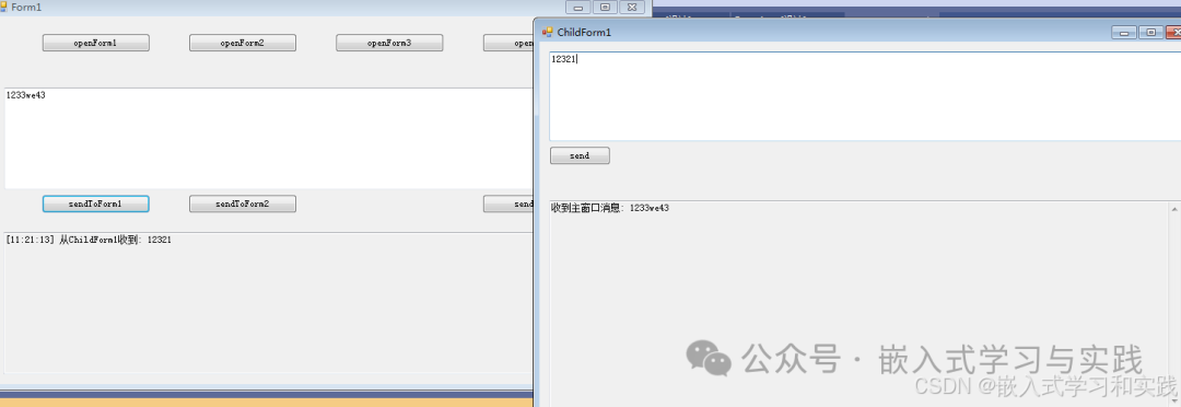 C# WinForms中多窗口之间各种通信方式的示例。示例包含一个主窗口和多个子窗口,测试开发中常用的几种通信方式。