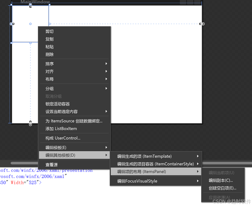 2、在设计视图中用鼠标选中ListBox控件并右健依次单击“编辑其他模板”-“编辑项的布局模板”-“编辑副本”。